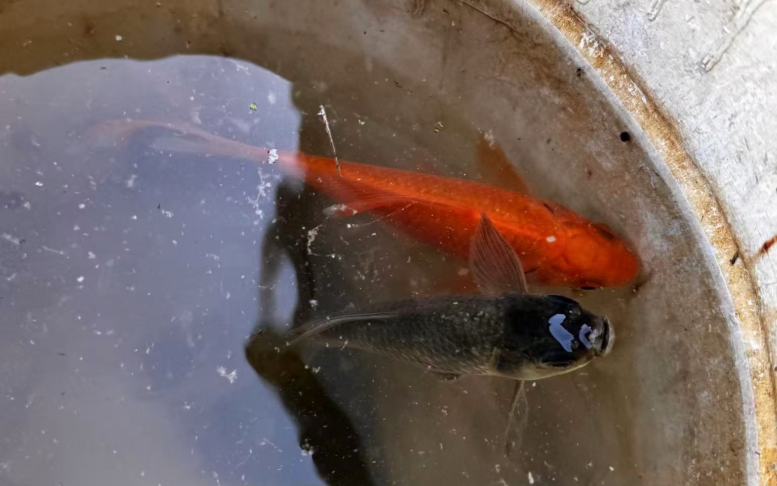 打网后又去钓了会鱼,第一次钓上来红色的鲫鱼,我没有放过这种鱼苗,应该是杂交品种