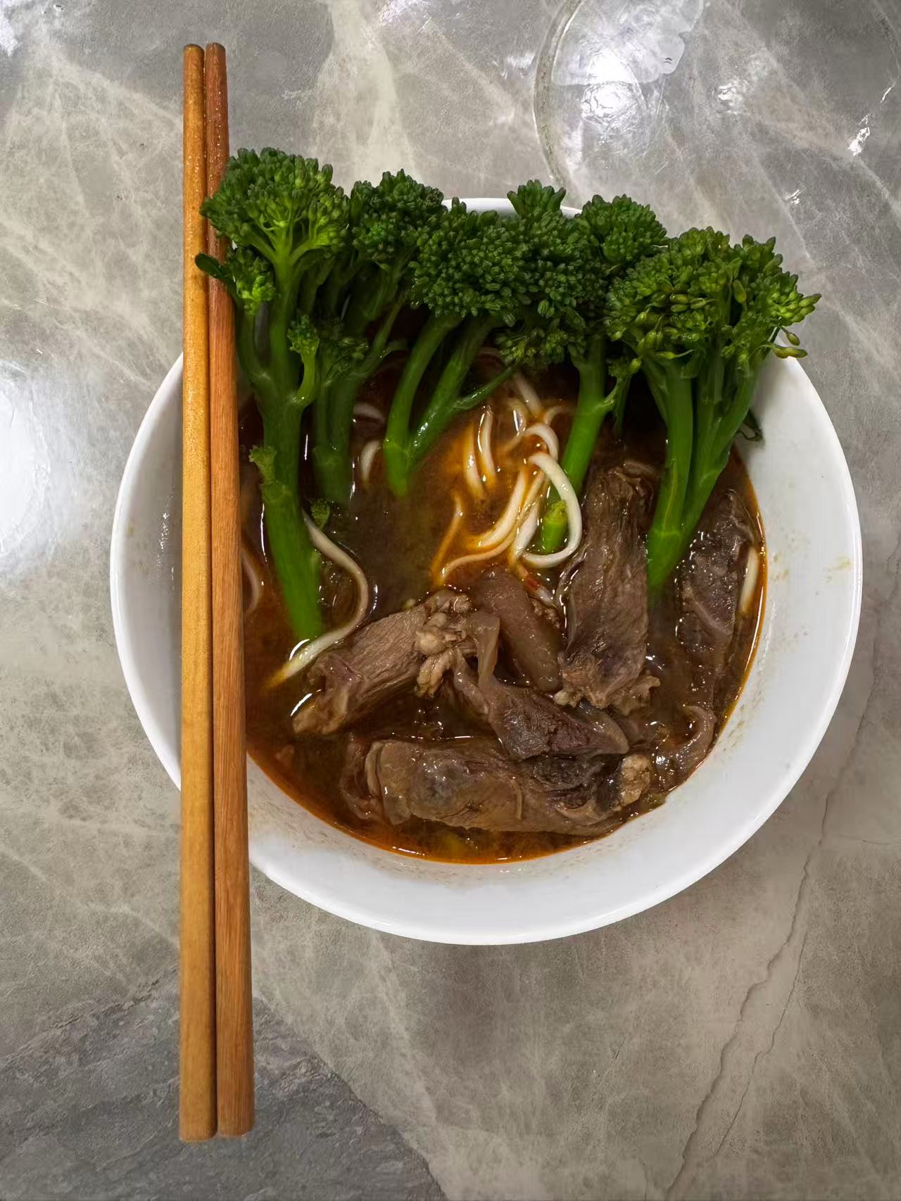 • mm台式红烧牛肉面 的牛肉分量很足,味道不错,而且面条给的很少,饿得快