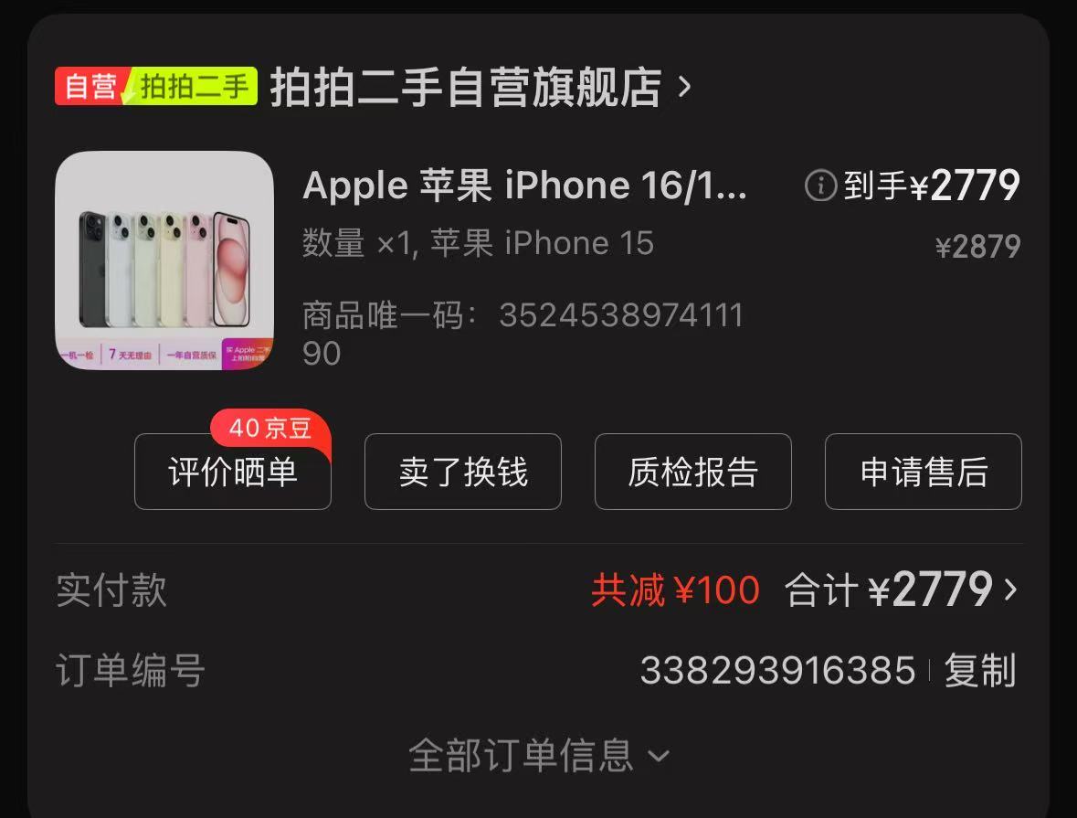 2 京东自营二手买了台二手最低配的iphone15来撸毛
