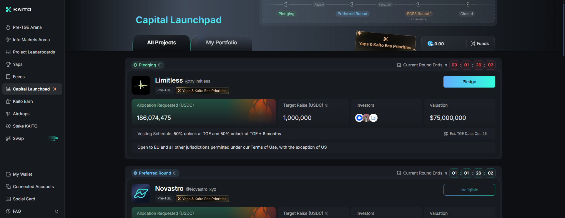 kaito 上的 limitless 打新募集了 1.86个亿,超募186倍,接近200倍,卷上天