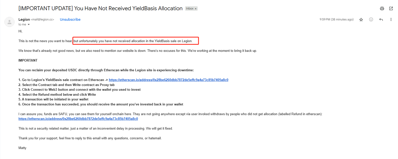 • legion 2个账户交了 20U+ eth gas,一点额度都没有分配到;打新这2天还宕机2次,真的草台班子