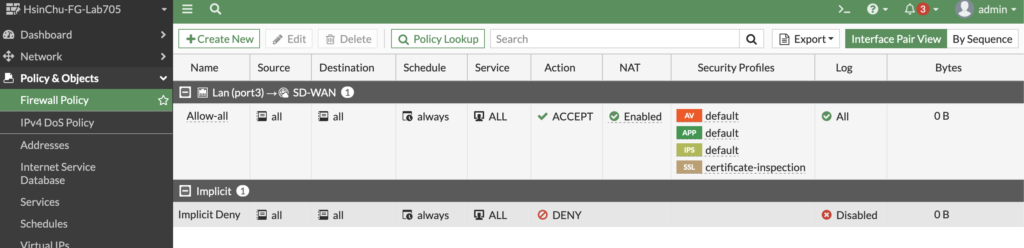 注意: 如需启用 Central NAT,请参考 FortiGate Central NAT 设定介绍
