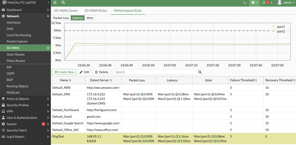 SLA参数(例如:PingTest) - 设定质量判断标准(例如:以